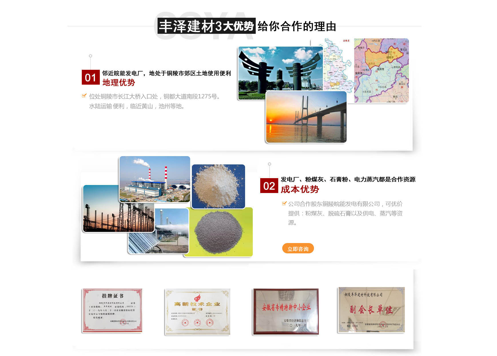 銅陵豐澤建材科技有限公司成立于2007年2月,坐落于銅都大道南段,占地4萬平方米,公司注冊資金1000萬元,現(xiàn)有職工百余人,是一家與皖能發(fā)電公司合作,專業(yè)從事電廠粉煤灰開發(fā)利用的高新科技企業(yè),現(xiàn)擁有一條年產(chǎn)30萬立方米蒸壓加氣混凝土全自動(dòng)生產(chǎn)線。 蒸壓加氣混領(lǐng)土(英文名Autoclaved aerated comcrete),也稱AAC,是以砂、粉煤灰等硅質(zhì)材料和石灰、水泥等鈣質(zhì)材料為主要原料,摻加鋁粉為發(fā)氣劑,進(jìn)行生產(chǎn)的新型墻體材料。是我國推廣應(yīng)用最早,使用最廣泛,技術(shù)最完整的輕質(zhì)保溫墻體材料之一,自問世以來,始終方興未艾,備受推崇。